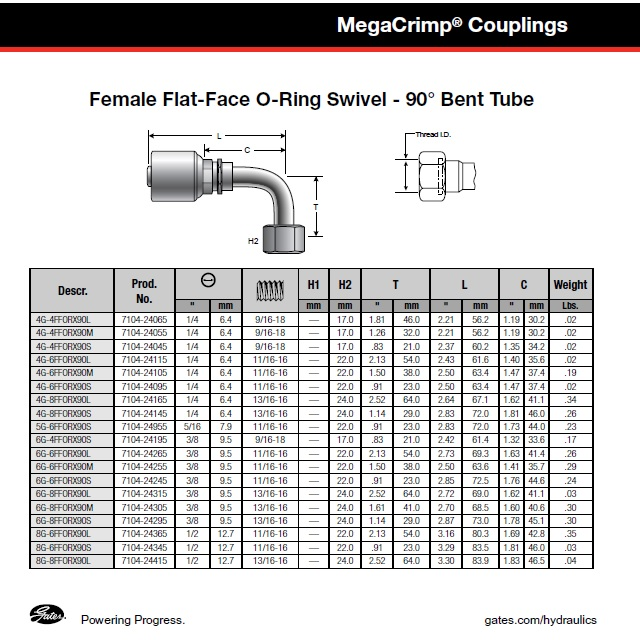 Lehká řada úhlové koncovky MegaCrimp, otočná matice s připojením na plochu.Ve spojení s Gates Megacrimp koncovkou garantujeme 100% těsnost spojení po celou dobu životnosti – ani kapka oleje neuteče spojem mezi hadicí a koncovkou.
