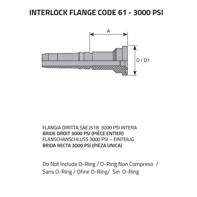 Lisovací armatura pro hydraulické hadice s přírubou SFL, SAE J518, Interlock, řada 3000 PSI.