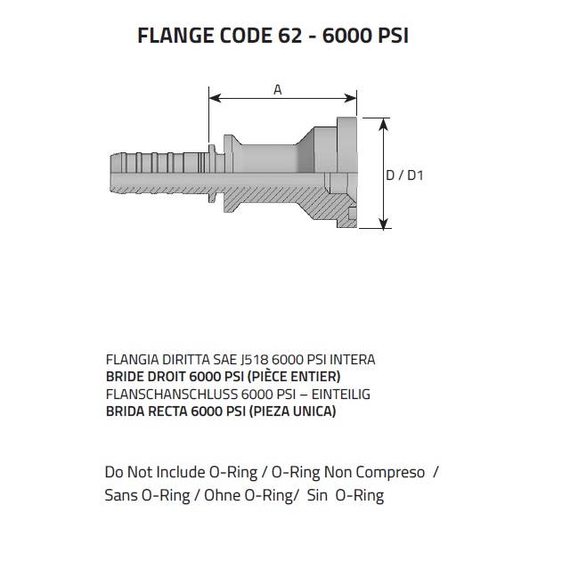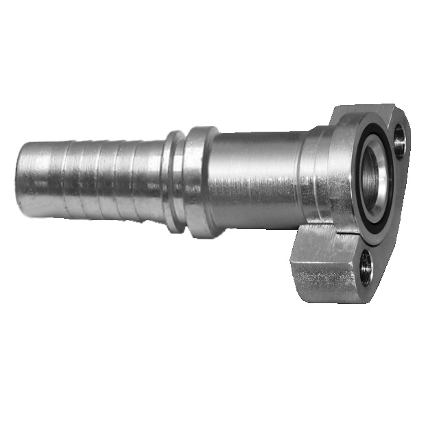 Lisovací armatura pro hydraulické hadice s přírubou SFS, SAE J518, řada 6000 PSI.Standardní lisovací strana pro lisovací objímky (nejedná se o interlock).