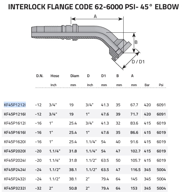 LD Lis. Interlock s přírubou SFS 90° SAE J518, 6000 PSI