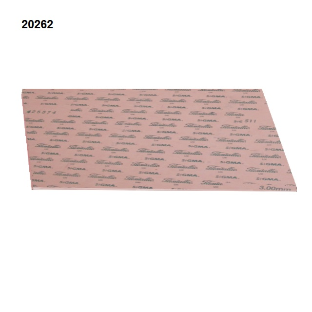 Biaxiálně orientované PTFE obsahující křemík pro absolutně největší rozsah teplot. Výrobek vhodný pro kovové příruby a šroubové spoje s omezenou sílou pro utažení. Tyto aplikace zahrnují lemované sklo, plastové a tenké nebo zvlněné kovové příruby.Výhody a použití: Zvýšená stlačitelnost při nízké utahovací síle (tahu šroubů). Zlepšená flexibilita oproti běžným kalandrovaným a grafitovým deskám. Dle FDA - pro potravinářský, farmaceutický průmysl a elektroniku.Norma WRAS - schváleno pro teplou a studenou pitnou vodu.Materiály řady Sigma® obsahují nelepivé vlastnosti, které pomáhají při snadném odstraňování po jejich použití a výrazně zkracují prostoje při vypnutí strojů nebo zařízení. Chemická odolnost: Může být použit pro všechny koncentrace kyseliny sírové.Mírně koncentrované kyseliny a žíraviny chlóru a peroxidu vodíku.Technické parametry: Propustnost pro plyny = DIN 3535-6 ~ <0.1 l/min. (pro 1,5 i 3 mm).Únik paliv typ A, dle ASTM F37A při stlačení 1000 PSI a 50 PSI palivem "A" ~ 0,4 mL/min. (tl=1,5) a 0,3 mL/min. (tl=3,0 mm). (1000 PSI ~ 6,9 MPa).Zotavení pro tloušťky 1,5/3 dle ASTM F36A = 44/45%.Nabízené služby: Strojní řezání pryže na pásky, řezání tvarového těsnění na digitálním plotru"