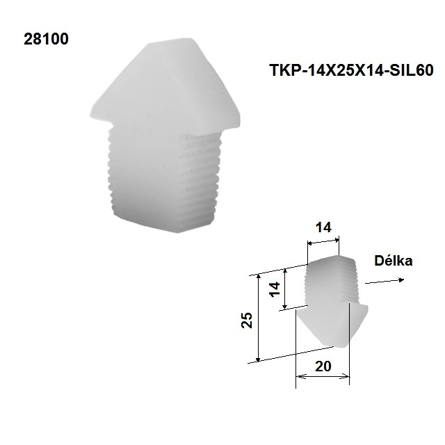 TKP-14X25X14-SIL60; Rozměr nátrubku (mm) 14, Šířka (mm) 20, Hmotnost (kg) 0,38, Kóta B 25, Kóta A 14, Barva Bílý silikon