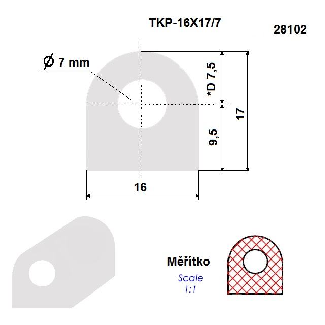 VariantyTKP-16X17/7-D*7,5-Q60FDA; Druhý průměr (mm) 7, D.* (mm) D=7,5, Hmotnost (kg) 0,13, Kóta B 17, Kóta A 16