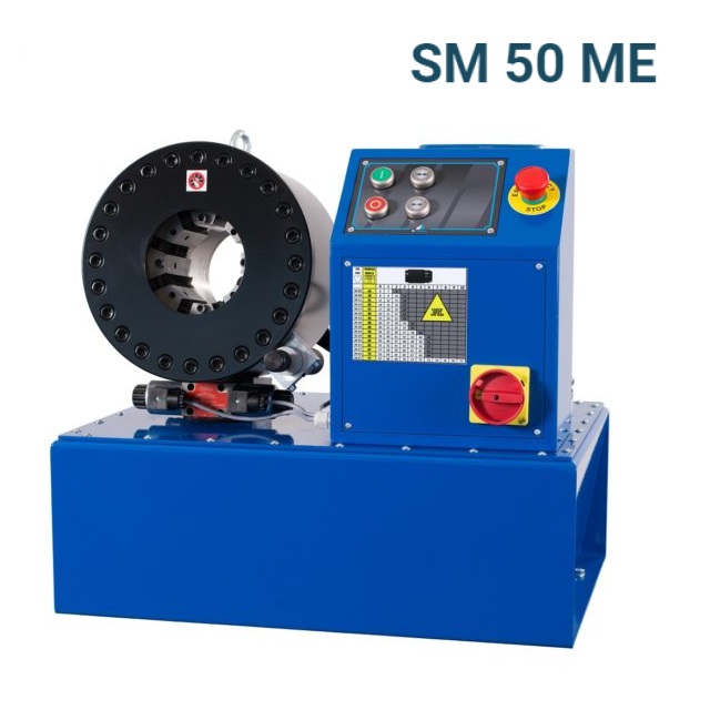 Hydraulické lisy do maximální velikosti hadice 1.1/2" 2SN, 1.1/4" 4SH. Lis nemá ve standardní výbavě stůl ani jiné součásti, které jsou uvedeny jako příslušenství k lisu.Maximální průměr (otevření) je 32 mm. Max. lisovcí průměr 61 mm.Lisovací rozsahy 6-61 mm, lisovací síla 1650 kN.Lisy SM 38 jsou bez oleje. Verze:SM 38 ME - manuální verze je standardní stroj s mikrometrem. Výkon: 2.2 kW 400V (3Ph).SM 38 SE je vybaveno moderním a přesným digitálním ovládáním s volitelným nožním pedálem. Stejný výkon 2.2 kW 400V (3Ph).Stejné rozměry/ hmotnost: 654x470x600 mm / 157 Kg.