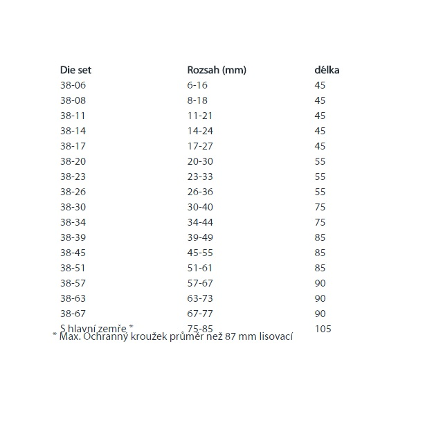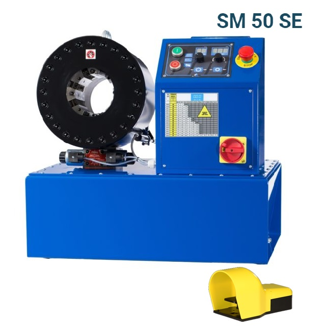 Hydraulické lisy pro max. velikost hadice 2" 2SN nebo 1.1/2" 4SH. Rozsah čelistí (nejsou součástí stroje): 6-16, 8-18, 11-21, 14-24, 17-27, 20-30, 23-33, 26-36, 31-41, 34-44, 39-49, 43-53, 45-55, 51-61, 57-67, 63-73, 67-77 mm. Verze: ME - manuální verze je standardní stroj s mikrometrem.SE je vybaveno moderním a přesným digitálním ovládáním s volitelným nožním pedálem. Viz příslušenství k lisům.