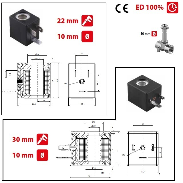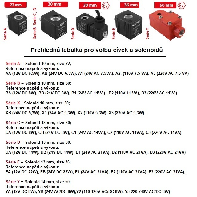 Elektrická 2. část "Solenoidu 01F", stejného průměru čepu 10 mm.Použití cívky k solenoidu naleznete v originálním katalogu (příloha je vždy u solenoidu), v posledním sloupci. Příklad vhodnosti artiklů GMS: 34500, 34502, 34503, 34505, nerezové 35500 atd. Vždy řada AIGNEP 01F.