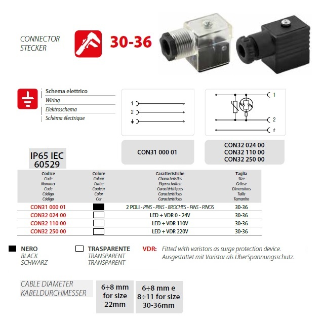SOL20024AB000; Série 03F-série D, DN (mm) 30, D.* (mm) *D13, Napětí 24 AC/50-60Hz, Výkon 21 VA, Hmotnost (kg) 0,206