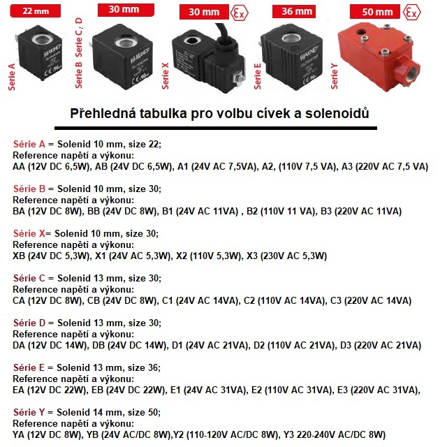 Cívka ventilu pro přímé ovládání solenoidových membránových ventilů. Průměr čepu solenoidu 13 mm. Krytí IP65 IEC 60529.