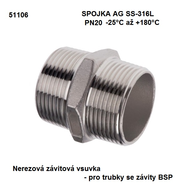 VariantySAG18/SS-PN20; Celková délka (mm) 26, Provozní tlak (bar) 20, Vnější závit 2xG1/8", JS (mm) 5,5, Délka závitu (mm) 9-9, Hmotnost (kg) 0,012, Šestihran 13