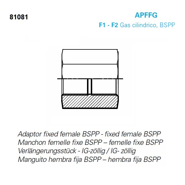 APFFG0808-SS; Celková délka (mm) 40, Provozní tlak (bar) 40, Vnitřní závit 2x G1/2", Hmotnost (kg) 0,075, Šestihran 27