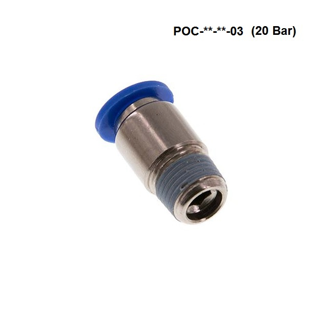 Výrobce SHPI - přípojka 10 Bar/ podtlak 80 KPa. Přípojka **-03 jiný výrobce má tlak 20 Bar. Trubkový PT - "Pipe Thread" jindy označovaný R - kuželový závit. Obě přípojky jsou bez vnějšího šestihranu, jsou opatřeny teflonovým nástřikem (bílá barva na závitu). Do kostky se dotahují vnitřním šestihranem (tabulka). Tento typ přípojky se využívá v místech, kde je přípojka "utopena" a vnější šestihran by překážel.
