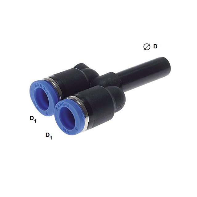 Y-spojka plastová 10 bar.Jednoruční provedení fungující na principu připojení jedním stisknutím umožňuje okamžité připojení hadic.Jednoduchý systém spojování PA,PU a PE hadic pro automatizaci a rozvody vzduchu. Tato řada je určena pro méně náročné aplikace.