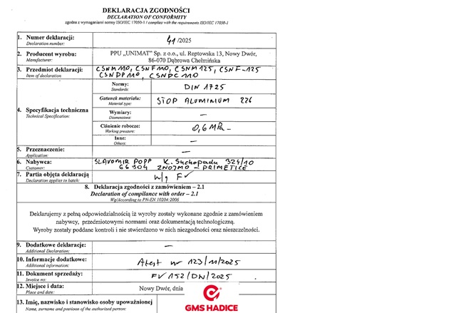 VariantySFIG110; Celková délka (mm) 178, Provozní tlak (bar) 8, DN (mm) 110, Hmotnost (kg) 0,9, Velikost [modul] RD130x1/4, Typ bez matky
