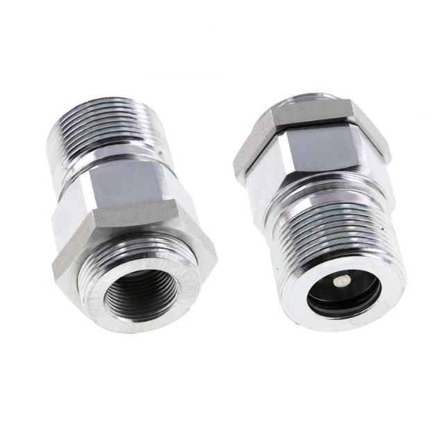 Šroubové spojky s rychlouzávěrem se uzavřou na zástrčce a na mufně v odpojeném stavu. Spojení spojovací mufny a spojovací zástrčky se provádí sešroubováním ruční matice. Při propojování je prostor ventilu utěsněný dříve než se ventily otevřou. Při odpojování jsou ventily již zavřené dříve než bude možné vytáhnout spojovací kabel z těsnění.Přepážkový závit : G 1.1/4" (41,9 mm), max. tloušťka příčky: 10 (EDBRF 10 : 16).Kompatibilní s rychlospojky Faster typ CVE.