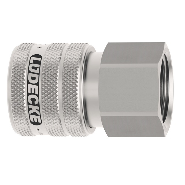 Rychlospojka z nerezové oceli 1.4305 s vnitřním závitem, série Dn 7,2 jednostranně uzavíratelná.Nerezové rychlospojky této série ESE DN 7,2 mají průměr nasazovacího čepu 12 mm.Rychlospojka s ergonomickou objímkou - vroubkované mají lepší úchop a nesmekají se.Pro přívod stlačeného vzduchu při zvýšené čistotě a hygienických předpisech nebo při dopravě různých médií (plyny, chemikálie, laky, farmaceutika).Několik oblastí použití ve farmacii, chemickém průmyslu, lékařské technice, potravinářském průmyslu, čistých prostorách i pro sofistikované pneumatické aplikace.Rychlospojky mají průtok 1150 l/min i při nízkém tlaku a mají minimální odpor průtoku.Možnost k objednání i rychlospojky pro kapaliny oboustranně uzavíratelné (-AAB).Materiál: Těleso, objímka, tělo ventilu, ventil, kolíky, kuželka: nerezová ocel 1.4305. Pružiny, pojistný kroužek: nerezová ocel 1.4310, těsnění FKM (Viton).