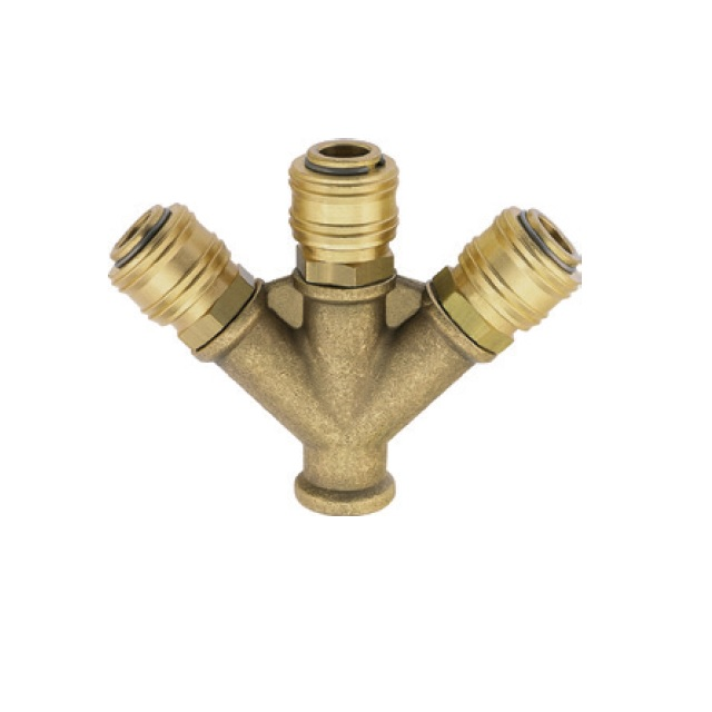 Standard roztrojka Dn 7,2 včetně rychlospojek.Rozvaděče jsou určeny pro stlačený vzduch, kapaliny, páry a plyny.Vyznačují se velkým průtokem při malých vnějších rozměrech a jednoduchou manipulací.