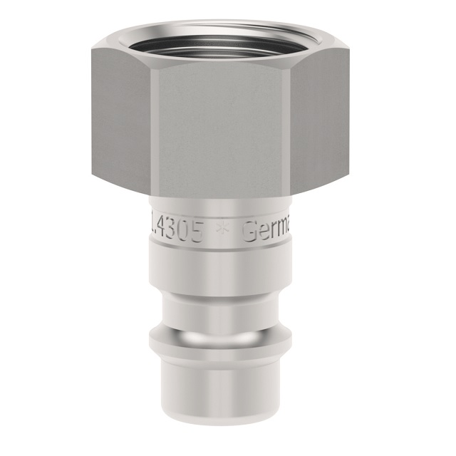 Ludecke rychlospojka z nerezové oceli 1.4305, s vnitřním závitem, série Dn 7,2, oboustranně uzavíratelné. Rychlospojky mají průtok 660 l/min. i při nízkém tlaku a mají minimální odpor průtoku.Nerezové rychlospojky této série ESE DN 7,2 mají průměr nasazovacího čepu 12 mm.Několik oblastí použití, zejména pro kapalná média ve stavbě zařízení, měřící a regulační technologie, farmacie, lékařské technologie, chemický průmysl, potravinářský průmysl a také pro zvýšení čistoty a hygienických předpisů.Dvojité vypnutí, aby při odpojování nedošlo k úniku média. Spojky lze připojit pomocí přímých zástrček DN 7,2. Dvojité uzavírací zátky však nemohou být spojeno se standardními spojkami DN 7,2.Materiál: Těleso, objímka, tělo ventilu, ventil, kolíky, kuželka: nerezová ocel 1.4305. Pružiny, pojistný kroužek: nerezová ocel 1.4310, těsnění FKM (Viton).