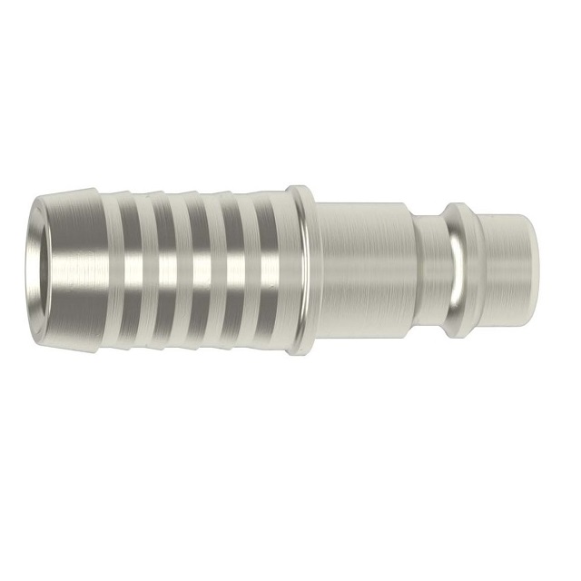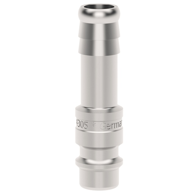 Rychlospojka trn z nerezové oceli 1.4305, série Dn 7,2 jednostranně uzavíratelná.Nerezové rychlospojky této série ESE DN 7,2 mají průměr nasazovacího čepu 12 mm.Rychlospojka s ergonomickou objímkou - vroubkované mají lepší úchop a nesmekají se.Pro přívod stlačeného vzduchu při zvýšené čistotě a hygienických předpisech nebo při dopravě různých médií (plyny, chemikálie, laky, farmaceutika).Několik oblastí použití ve farmacii, chemickém průmyslu, lékařské technice, potravinářském průmyslu, čistých prostorách i pro sofistikované pneumatické aplikace.Rychlospojky mají průtok 1150 l/min i při nízkém tlaku a mají minimální odpor průtoku.Materiál: Těleso, objímka, tělo ventilu, ventil, kolíky, kuželka: nerezová ocel 1.4305. Pružiny, pojistný kroužek: nerezová ocel 1.4310, těsnění FKM (Viton).