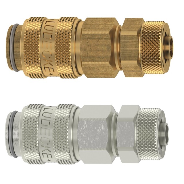 Miniaturní vsuvka DN 5 v provedení z čisté nebo poniklované mosazi MS 58 pro Evropu.Tato řada je výrobce Ludecke zařazena mezi dvě série: ESM (double shut-off) pro vzduch 35 bar, a také pro ESMLA (dripless) pro kapaliny PN 8."Dripless" - patří mezi BEZODKAPOVÉ.Kompatilita je zajištěna vsuvkou s vnějším průměrem 9 mm a řadou DN 5. Funkce je stejná. Vsuvky je možné aplikovat pouze s rychlospojky oboustranným ventilem.Provedení je robustní, bezpečné a spolehlivé. Vyznačují se velkým průtokem při malých vnějších rozměrech a jednoduchou manipulaci.Několik oblastí použití, zejména pro kapalná média ve stavebnictví, řídicí technologii, chlazení rozvaděčů atd.