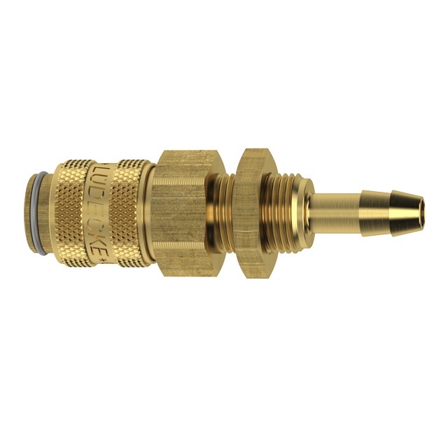 Délka závitu přes otvor v přepážce je 14 mm, přesuvná kantramatka je široká 4 mm.Typu této spojky se také říká panelová rychlospojka.Spojka je kompatibilní s celým systémem ES* i ESE*, DN 7,2 s čepem 12 mm.