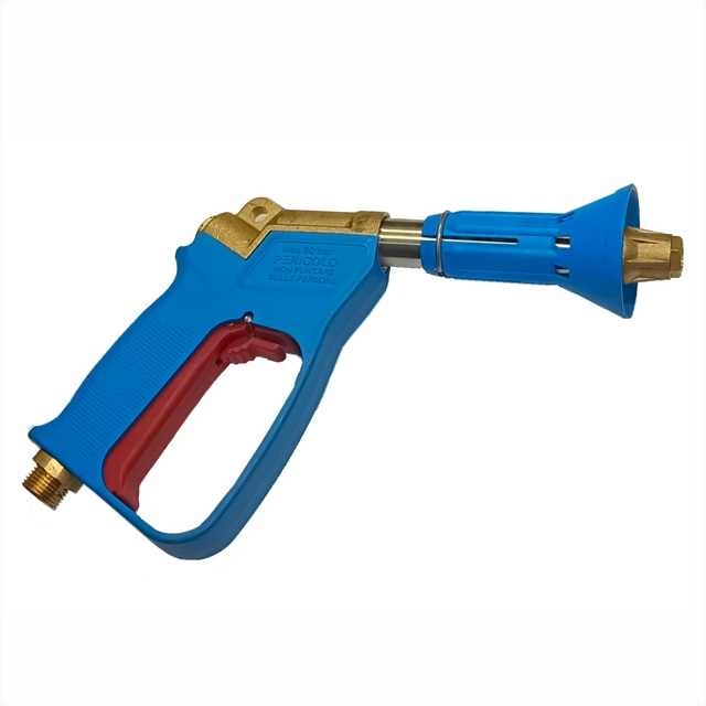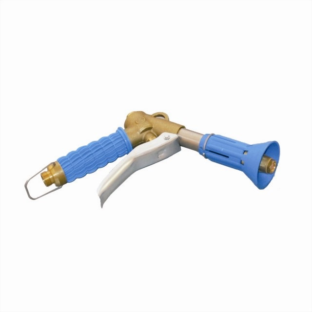 Pistole s mosaznou tryskou na vodu do 100°C.Pistole je možno zaaretovat objímkou z drátu.Použití je v potravinářských provozech a nebo v zemědělství k mytí hrubých nečistot větším tlakem a teplou vodou.