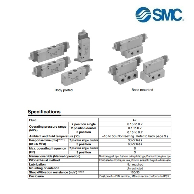 Ventil je k dispozici v provedení se závity přímo v tělese nebo pro montáž na základovou desku.Je vybaven elastomerovými těsněními a nabízí relativní průtočný objem C = 2,9 dm³/(s·bar), což jej činí vhodným pro použití s pneumatickými válci o průměru 50 mm.