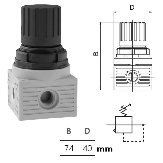 T070002040000; Provozní tlak (bar) 0-12, Vnitřní závit G 1/8", Hmotnost (kg) 0,13, Kóta A 40