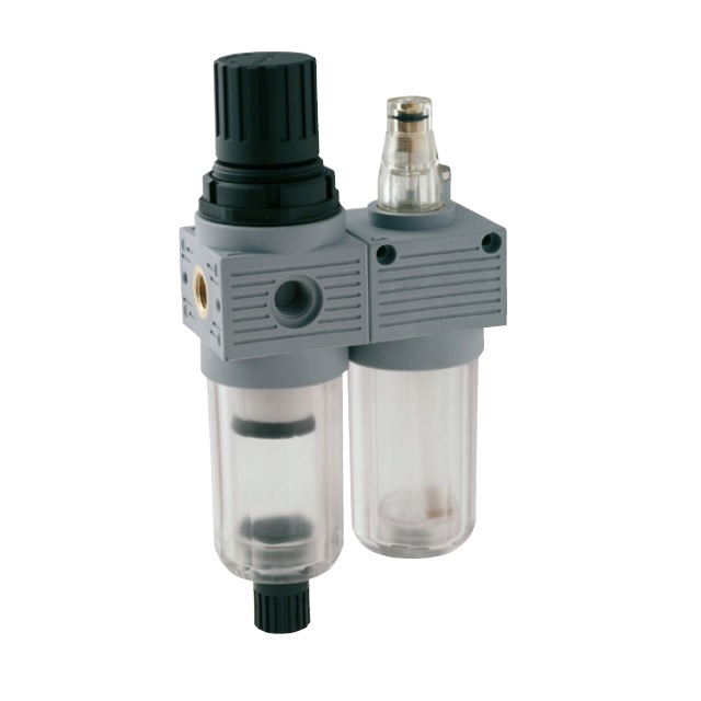 FR+L 0 - filtrace 5, 20 (nejpoužívanější) a 50 mikrónů, při průtoku vzduchu 260 Ni/min.Rozsah tlaků 0,5 až 8 (nejpoužívanější) nebo 0,5 až 12 barů.Menší tlaky regulátor neotevřou. Výrobce Aignep všechny regulátory zkouší na tlak, a proto pokud regulátor propouští, byl namontován obráceně ve směru toku!Ovládání manuální.G 1/8 tlakoměr (manometr).