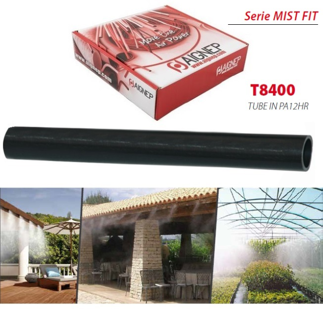 Hadice od výrobce "Série MIST FIT"Ochlazování teploty, zvlhčování, difúze vůní, scénografické účinky v parcích, zavlažování pro ovoce, zeleniny, květiny - skleníků.Centralizovaná nebulizace: inhalátory, ničení prachu, zvlhčování ovzduší, zavlažování skleníků, šíření vůní, dezinfekce hmyzu.