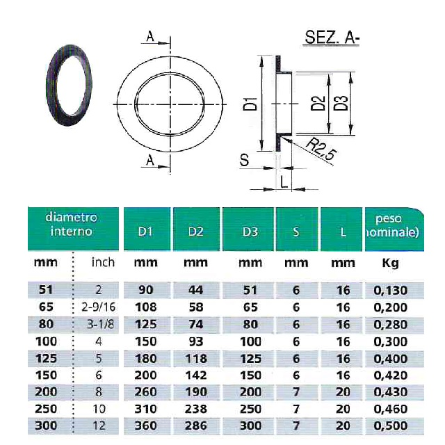 Těsnění ve tvaru L se používá pro kašovité hmoty. Otvory dle UNI EN 1092-1 - DIN 2576 jsou plně kompatibilní s jinýma systémy (SIGMA apod.).