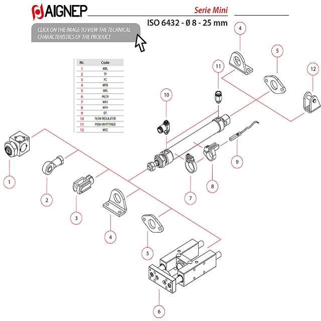 TF012; Vnitřní závit M6x1, DN (mm) 12, Hmotnost (kg) 0,027, Ovládání pro válce 12 mm