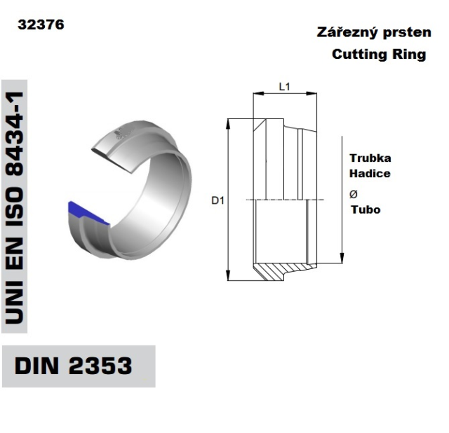 ADTL15-SS; Provozní tlak (bar) 315, Šířka (mm) 10, Série L, Průměr (mm) D1=19,0, Trubka (mm) 15, Hmotnost (kg) 0,011