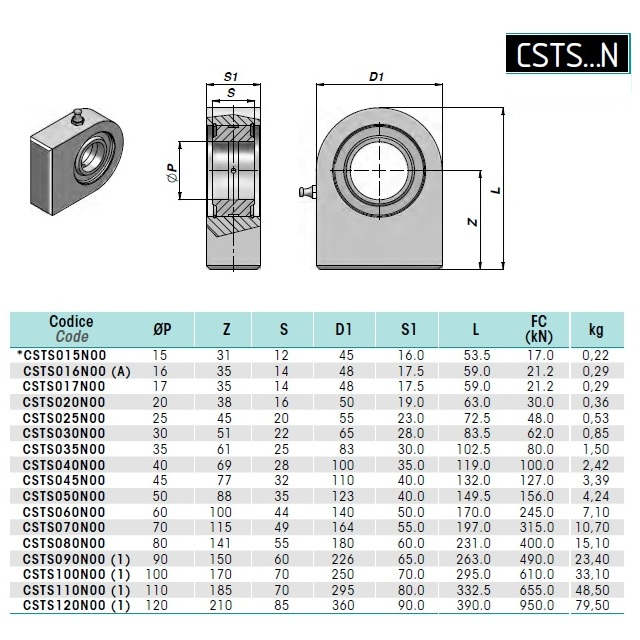 Kulový kloub řady CSTS…N má obdélníkovou základnu bez centrálního čepu.Je vhodný pro težké aplikace a obvykle se používá na spodní část hydraulického válce a konce pístních tyčí.Ložisko je vyjímatelné, což umožňuje údržbu nebo výměnu ložiska bez výměny celého těla čepu.Od průměru 20 mm je nutné mazání.Materiál: Ocel ISO 12240-1 ŘADA E - TYP S.Pouzdro je vyrobeno z oceli S355JR dle UNI EN 10025.