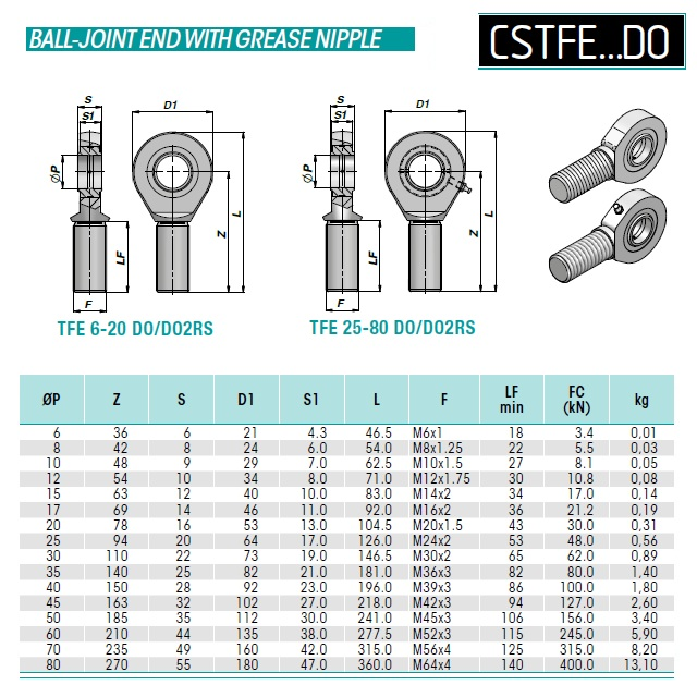 VariantyOKO-CSTFE915DO; Celková délka (mm) L=83, Série TFE-DO*, Vnější závit M14x2, Výkon 17kN, Trubka (mm) ØP15, Hmotnost (kg) 0,14