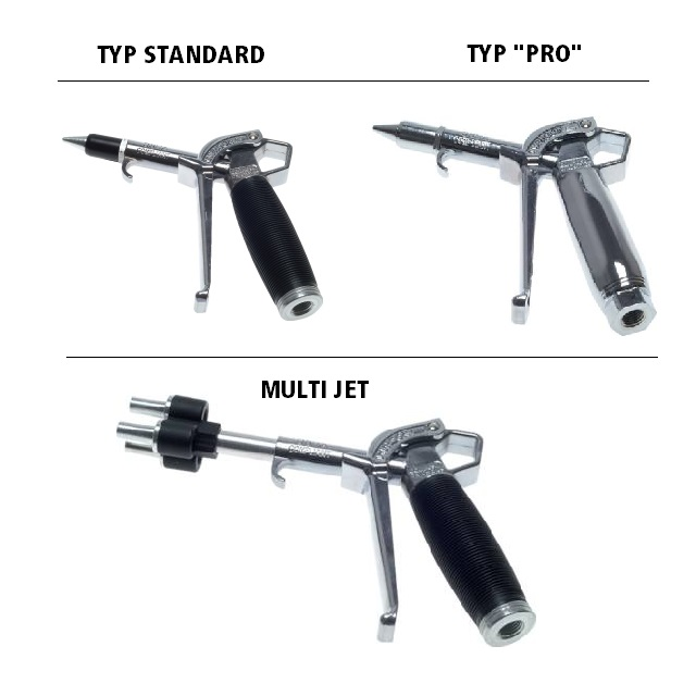Výhody TYPHOON: výrazně vyšší foukací výkon než u běžných foukacích pistolí při současně velmi dobrém dávkování, velmi robustní provedení při nízké hmotnosti, sedí bezpečně v ruce, jsou vybaveny bezpečnostní tryskou. Typ PRO: kompletně pochromovaný povrch odolný vůči mnoha chemikáliím a rozpouštědlům, dá se lehce vyčistit.Dodací termíny běžně do týdne. Obrázky jsou ilustrační, tj. bez nátrubků (hadičníků), které jsou namontované k pistolím pomocí připojovacího závitu G1/4".