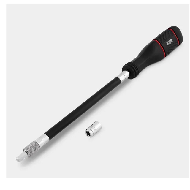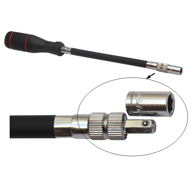 Vyměnitelné adaptéry SW6/SW7 je násuvně spojená, zajištěna přes kuličkuŠroubovák má oproti klasickému klíči výhodu, že při utahování šroubu, který zatáčí dle hadice, se přizpůsobí rádiusu a drží na sponě až do konce utahování.