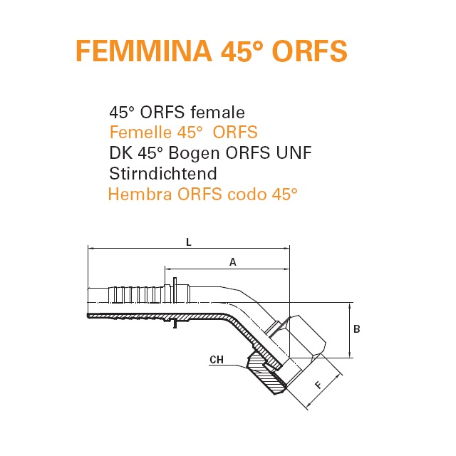 Lisovací nátrubek úhel 45° pro hydraulické hadice, americký závit UN(F), ORFS.Pro výběr koncovky k patřičnému průměru hadice slouží údaj "Určeno na hadici [Inch]"