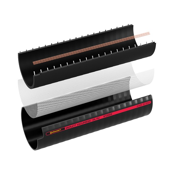 Varianty076/091-NF010-11107; Podtlak (kPa) 90, Provozní tlak (bar) 10, Poloměr ohybu (mm) 210, Vnější průměr (mm) 90,5, Vnitřní průměr (mm) 76, Síla stěny hadice (mm) 7,2, Hmotnost (kg) 2,7