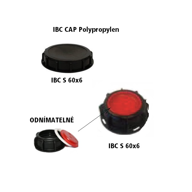 VariantyIBC-60CAP-PP; Vnitřní závit S60x6, Série Pevné, Závitové těsnění --, Hmotnost (kg) 0,102, Barva Černé