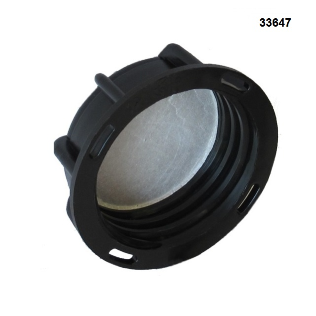 Víčko pro kontejnerovou techniku, např. k uzávěru kohoutů, vypouštěcích ventilů apod.Vnitřní závit je označovan jako IBC IG S60 x 6 (oblý Whitworthův závit se stoupáním 6 závitů na 1 palec).