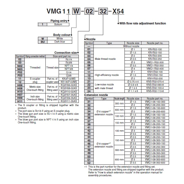 VMG11-X54 je profesionální vzduchová ofukovací pistole, určená pro práci se stlačeným vzduchem v průmyslu, dílnách a servisních provozech.Pistole má integrovanou možnost regulace průtoku vzduchu pomocí síly, kterou obsluha přitlačí na páku spouště, tzn. že můžete jemně dávkovat množství vzduchu podle potřeby.Lze vybírat různé typy připojení (závity Rc/G/NPT, rychlospojky) a různými typy trysek podle aplikace – krátké, dlouhé, nízko-hlukové nebo úsporné modely.