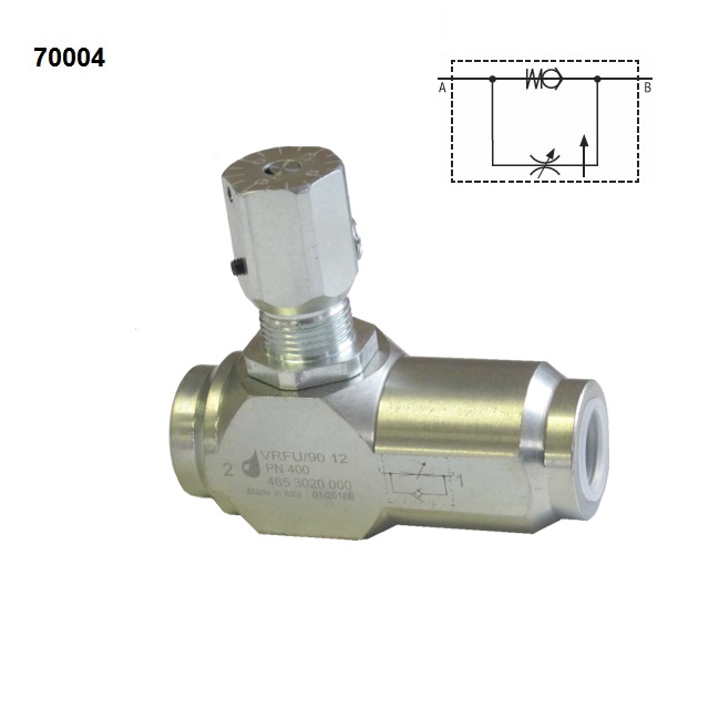 Použití a aplikace: škrcení průtoku vysokotlakového oleje oběma směry (ze zdoje A do B a zpět). Množství škrceného oleje závisí na tlaku, teplotě a viskozitě oleje. Tyto ventily nemají tlakový kompenzátor. Nastavení průtoku se provádí rotací kovového ovladače, proti směru hod. ručiček pro zvýšení průtoku a naopak pro zaškrcení průtoku. Otevírací tlak ventilu je 0,5 Bar.