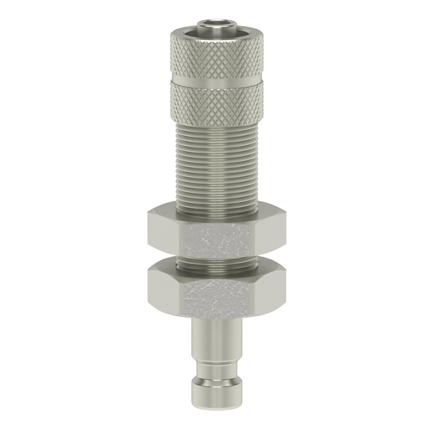 Spojky nejmenších rozměrů DN 2,7 z poniklované mosazi nebo nově z také z červené mosazi MS 58.Změna kódu u výrobce Lüdecke - nově pro niklované druhy ESMCN !Na zažádání také k dispozici s červeným nebo modrým eloxovaným hliníkovým tělem spojky.Použití v oblasti pneumatice, v řídící, měřící a regulační technice.