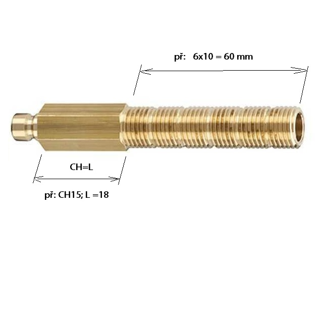 ESD1415-60NA; Celková délka (mm) 100, Vnější závit M14x1,5, Délka závitu (mm) 6x10= 60, Hmotnost (kg) 0,055, Šestihran 14/L1=26
