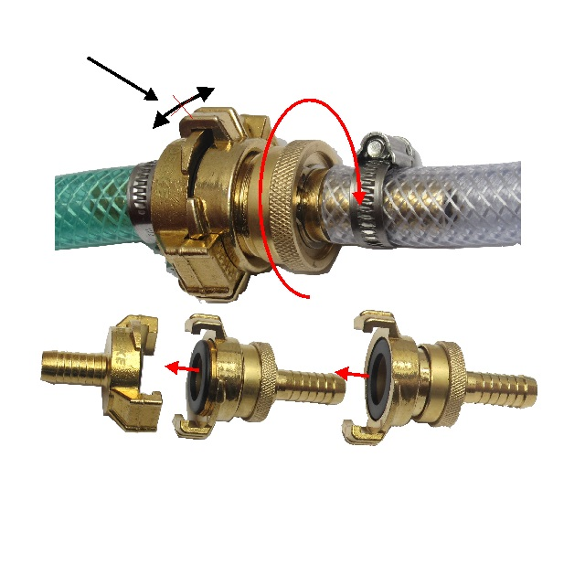 Bajonetové mosazné rychlospojky určené pro průmyslové použítí. Spojka WATER PROFI TRN SG "Mody GSSG" zamezuje nechtěné rozpojení spoje obou rychlospojek.V praxi to znamená, bezpečné a pevné spojení dvou hadic, zabraňující nechtěné rozpojení, načež by vznikl únik média (např. tažením po zemi nebo pádem z výšky).Zámek spoje lze rozpojit jedině po ulovnění zajišťující matice, která vysouvá trn (GSSG).Pozor, nejsou zaměnitelné s rychlospojkami pro tlakový vzduch (viz bajonetové rychlospojky DRAP).Těsnění pro tento spoj: výška ani typ není podmínkou! Starší typy i nové provedení těsnění je možné.