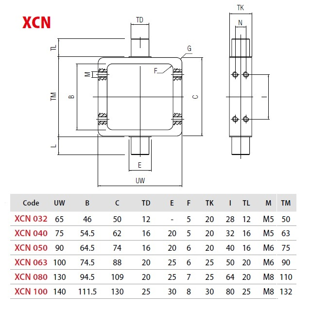 XCN032; DN (mm) 32, Hmotnost (kg) 0,127