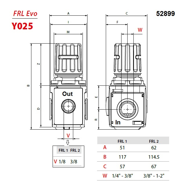 VariantyY025103030000; Vnitřní závit G 1/8", Série Size 1, Vnější závit M37x1,5, Připoj. závit G 1/4", Regulace 0,1-8,0, Hmotnost (kg) 0,236, Velikost [modul] FRL 1