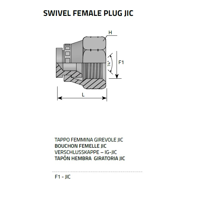 ATFGJ20; Celková délka (mm) L=33, Provozní tlak (bar) 140, Vnitřní závit UNF 1.5/8", Hmotnost (kg) 0,015, Šestihran 50