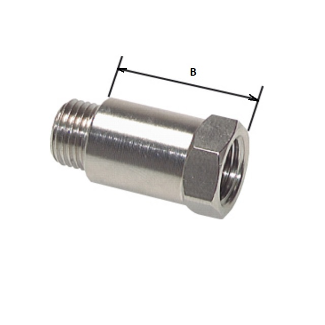 SAG18-IG18/MS-45MM; Provozní tlak (bar) 16, Vnitřní závit G 1/8", Připoj. závit AG1/8", Hmotnost (kg) 0,036, Šestihran 14, Kóta B 45