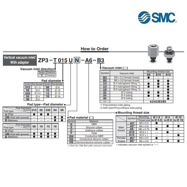 ZP3-T*B vakuová přísavka pro přesnou a rychlou manipulaci.Ideální pro použití v automatizaci, robotických ramenech, balicích linkách nebo manipulaci s plochými či mírně zakřivenými povrchy.Materiál přísavky: NBR, silikon, uretan, FKM, vodivý NBR a vodivý silikon.Tvar přísavky: měch.Možnosti: vnitřní závit, přívod vakua nástrčnou spojkou, přívod vakua nátrubkem, přívod vakua v ose.